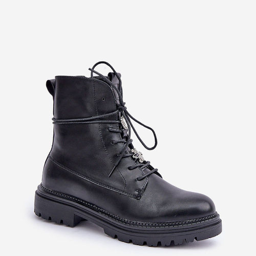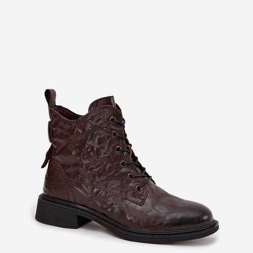 Women's ankle boots by Artiker are a proposal that catches the eye and emphasizes individual style. Set on a flat heel, they guarantee comfort and stability during everyday wear. The model combines practical lacing and a side zipper, making it easy to put on and adjust to the foot. The interior is lined, providing comfort and warmth on cooler days....