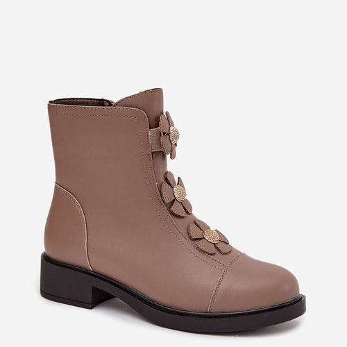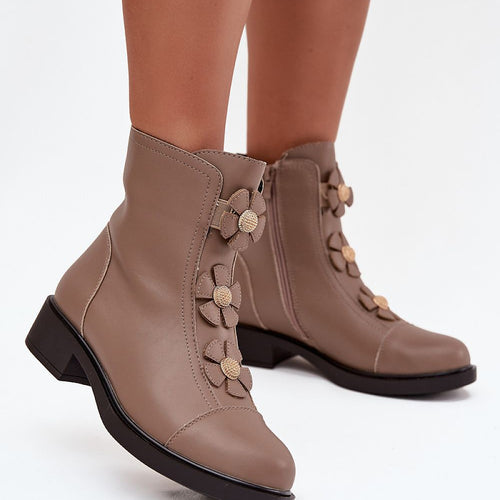 Women's ankle boots by Jezzi combine classic style with a feminine touch. Made of natural leather, they present high quality and an elegant look. The model fastened with a practical zipper is comfortable for everyday use, and the insulated interior ensures comfort on cooler days. Decorative flowers adorn the front of the shaft, adding a subtle charm and unique character....
