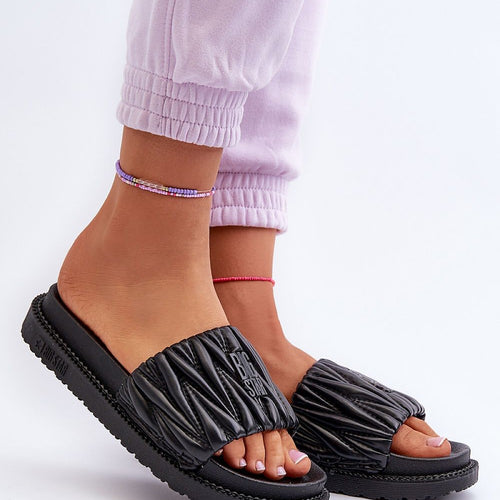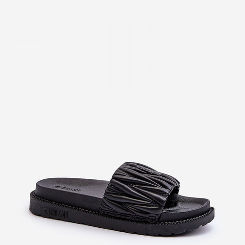 Women's flip-flops by Big Star are a stylish footwear that fits perfectly into your summer closet. Set on a platform. Wide strap on the front with a dream and the brand's logo. Thanks to the high quality workmanship, these flip-flops will become an indispensable part of your summer outfits! fabric artificial leather Footbed ~tworzywo sztuczne Platform height 4 cm Size...