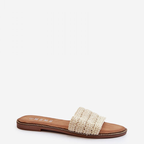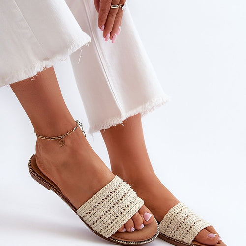 Classic women's flip-flops with a flat heel are a reliable choice for summer days. The simple design makes them a perfect match for many summer outfits. The front features a wide strap with a braided design. These flip-flops are a great choice for women who appreciate both style and comfort. fabric ~tworzywo sztuczne Footbed artificial leather Heel height 1 cm...