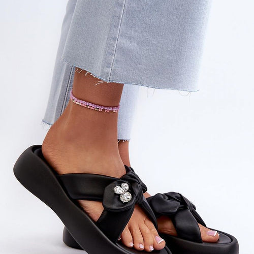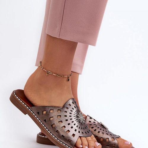 Elegant women's openwork flip-flops on a flat heel with an ornament are an option for women who appreciate comfort and style. The ornament gives a unique charm, making them perfect for both everyday wear and summer outings. The flat heel ensures comfortable wearing for a long time. You should definitely have them in your summer closet! fabric artificial leather Footbed...