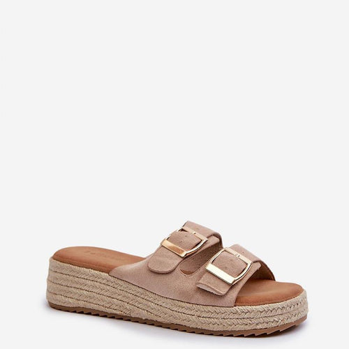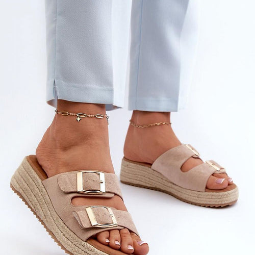 Women's slippers made of eco suede. Set on a platform and a lightweight wedge heel. In the front, there are two adjustable straps with buckles that ensure a perfect fit. This model not only looks great, but also provides everyday comfort. fabric imitation leather suede Footbed artificial leather Platform height 3 cm Size Insole lenght 36 23.5 cm 37 24...