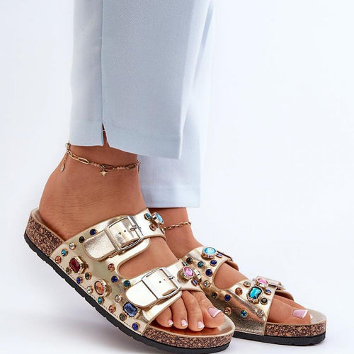 Women's flat heel sandals are a perfect choice for hot days! Adorned with a gold detail that adds elegance to them. They blend well with various outfits, making them a versatile wardrobe item. You must have them! fabric fabric Footbed artificial leather Size Insole lenght 36 23 cm 37 23.5 cm 38 24 cm 39 25 cm 40 25.5 cm...