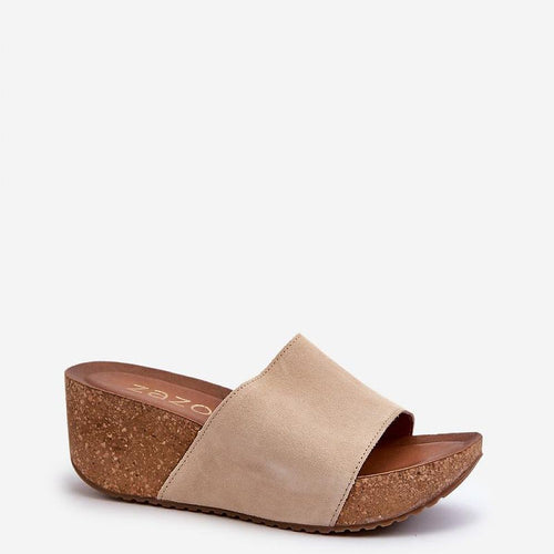 Women's cork wedge sandals. Made of high-quality genuine suede, they ensure durability and comfort. A fashionable style that will be a perfect choice for summer days. fabric natural leather Footbed natural leather Heel height 7 cm Platform height 2.5 cm Size Insole lenght 36 23.5 cm 37 24 cm 38 24.5 cm 39 25 cm 40 25.5 cm 41 26...