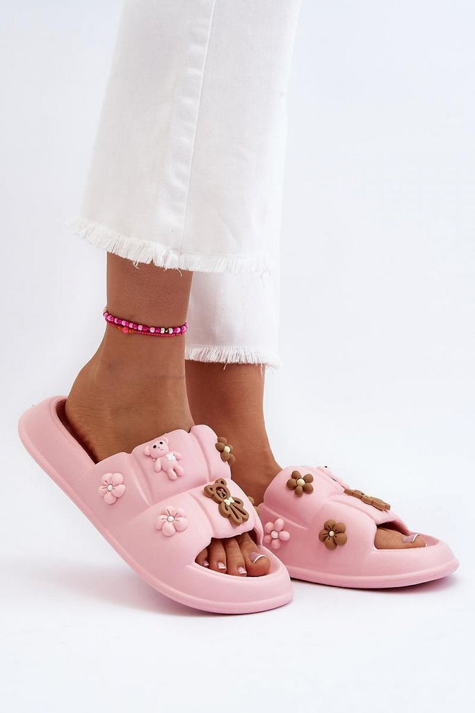 Adorable women's flip flops with a wide strap. Made of foam material. This model features eye-catching decorations on the front. Perfect for strolls on the beach or lazy afternoons on the terrace. You definitely need to have them! fabric ~pianka Footbed ~pianka Sole height 3.5 cm Size Insole lenght 36/37 23 cm 38/39 24.5 cm 40/41 25 cm