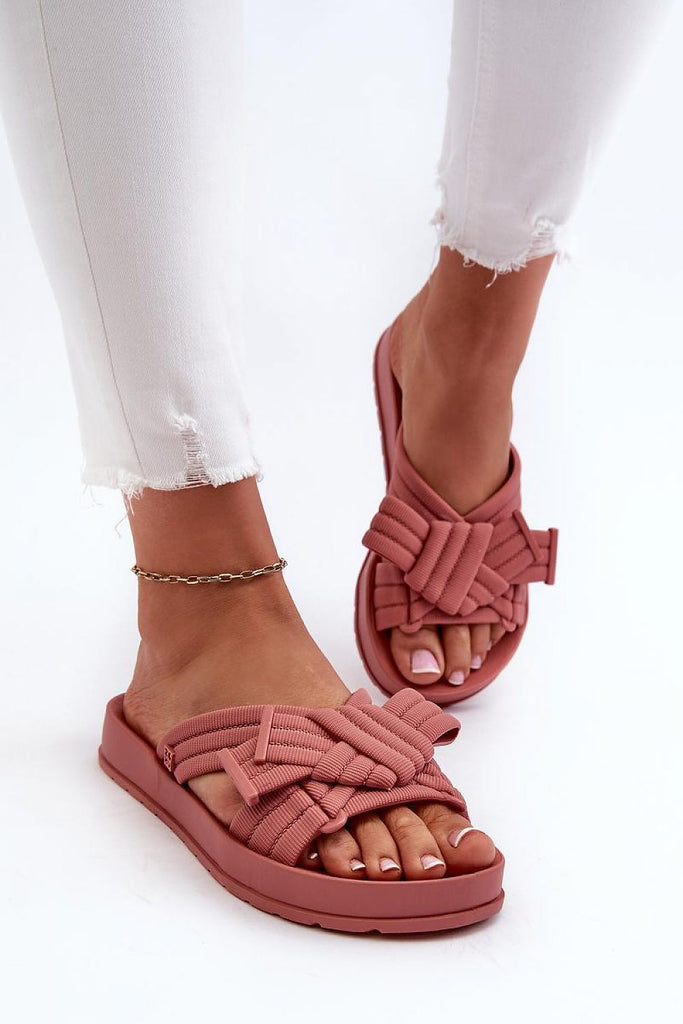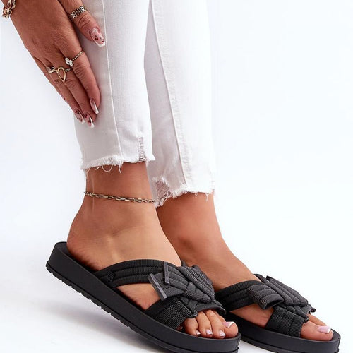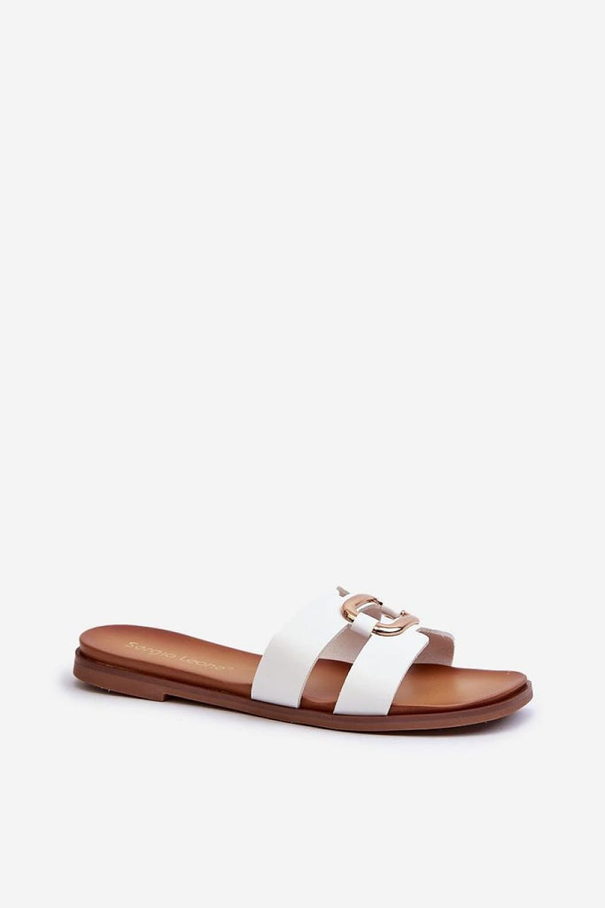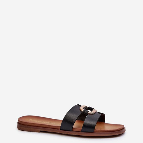 Elegant flat women's flip-flops made of eco leather are a perfect combination of style and comfort. The front is adorned with a golden detail that adds subtle elegance to any outfit. Perfect for active summer days, they guarantee comfort and freedom of movement. Fashionable and comfortable to wear, you simply must have them. fabric artificial leather Footbed artificial leather Size...