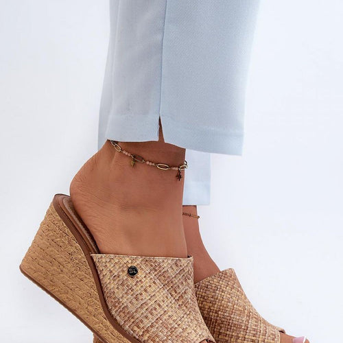 Sergio Leone women's flip flops are a perfect combination of style and comfort. Set on a wedge heel with a braided imitation, they have a unique charm. Made from high-quality materials, they not only offer an attractive appearance but also ensure long-lasting comfort. Perfect for summer walks or meetings with friends. fabric ~tworzywo sztuczne Footbed natural leather Heel height 8...