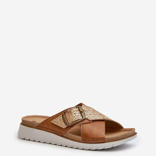 Women's flip-flops from the INBLU brand. Made of high quality ecological leather. Set on a low heel. Decorated with a strap with a buckle. The COMFORT ANATOMICO insole is profiled, adapted to the anatomical shape of the foot, made of soft, natural leather. The bottom is made of lightweight and flexible material, providing resilience and very good load transfer to...