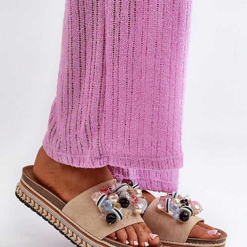 Stylish women's flip-flops from the brand S.Barski. Set on a decorated platform. On the strap numerous decorations. This model has a profiled insole, which will ensure comfort at every step. Perfect for summer dresses and pants! fabric imitation leather suede Footbed artificial leather Platform height 4 cm Size Insole lenght 36 23.5 cm 37 24 cm 38 24.5 cm 39...
