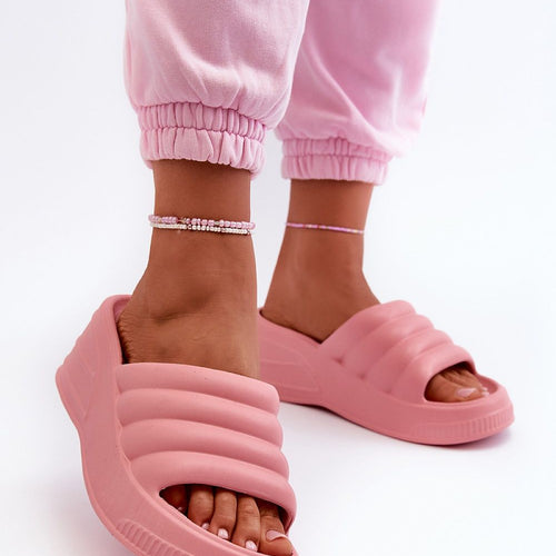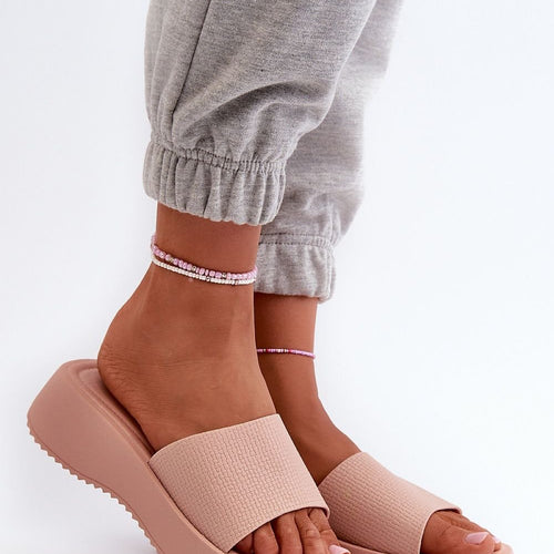 Women's flip-flops on a massive platform. Made of lightweight foam, they are an excellent choice for the pool. They provide comfort and stability, perfect for relaxing days by the water. fabric ~pianka Footbed ~pianka Platform height 4.5 cm Size Insole lenght 36 23.5 cm 37 24 cm 38 24.5 cm 39 25 cm 40 25.5 cm 41 26 cm