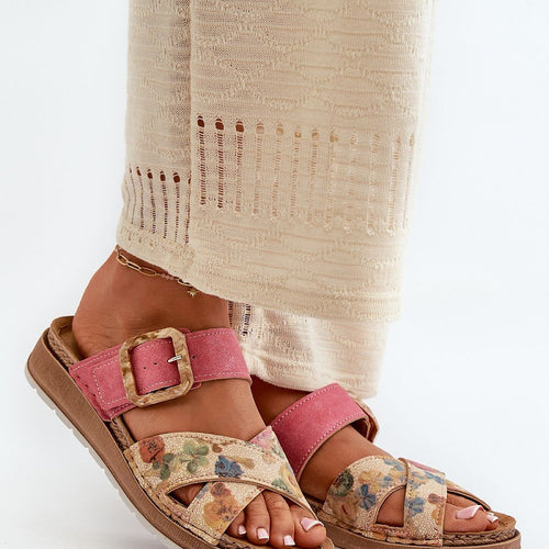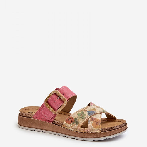 Lightweight women's flip-flops from the brand Inblu. This model has two patterned straps and one adjustable one with a buckle. The contoured insole fits the anatomical shape of the foot. The lightweight, two-layer elastic bottom provides resilience and excellent load transfer for comfortable wear. fabric artificial leather Footbed ~skóra naturalna zamszowa Heel height 4 cm Platform height 2 cm Size...