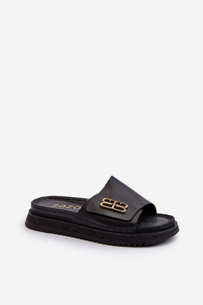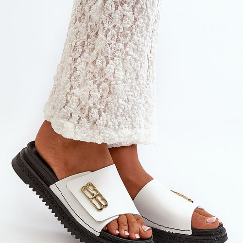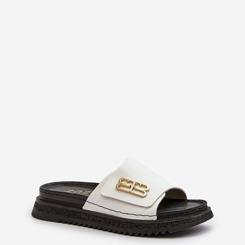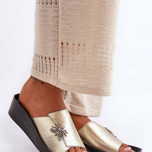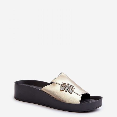 Women's flip-flops made of natural leather. Set on a platform. The strap decorated with gold detail adds to their elegance. Ideal for summer days, these flip-flops will perfectly complement any styling, combining functionality with a fashionable look. fabric natural leather Footbed natural leather Platform height 4 cm Size Insole lenght 36 23 cm 37 23.5 cm 38 24 cm 39...