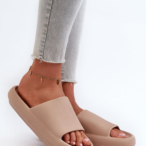 These flip-flops are the HIT of this season! They will perfectly fit into many everyday stylings! The flip-flops are made entirely of plastic imitating foam. This model has a fashionable wide strap. Flip-flops are ideal for everyday use, they will even work great instead of slippers. Extremely comfortable and convenient model. You simply must have them! fabric ~tworzywo sztuczne Footbed...
