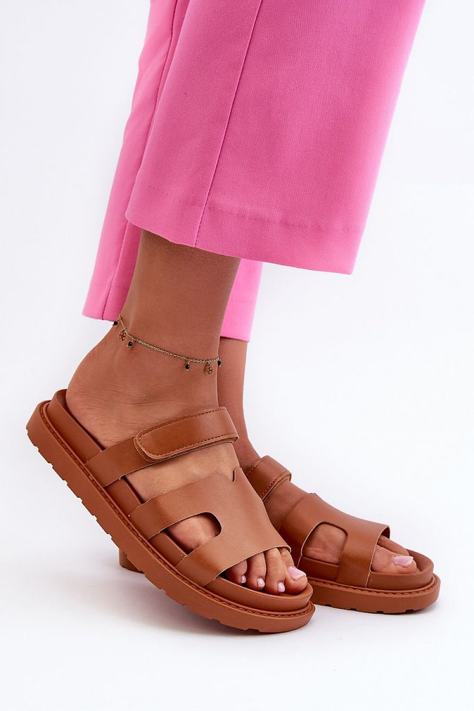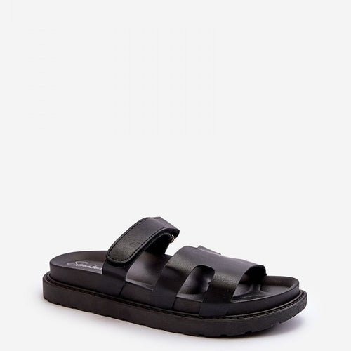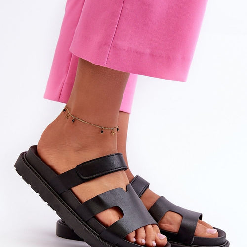 Women's flip-flops were made of eco leather. Set on a platform. A well-profiled insole will ensure comfort during use. This model has been enriched with a Velcro fastening, thanks to which the footwear can be adjusted to the size of the leg. fabric artificial leather Footbed artificial leather Platform height 3 cm Size Insole lenght 36 23 cm 37 23.5...