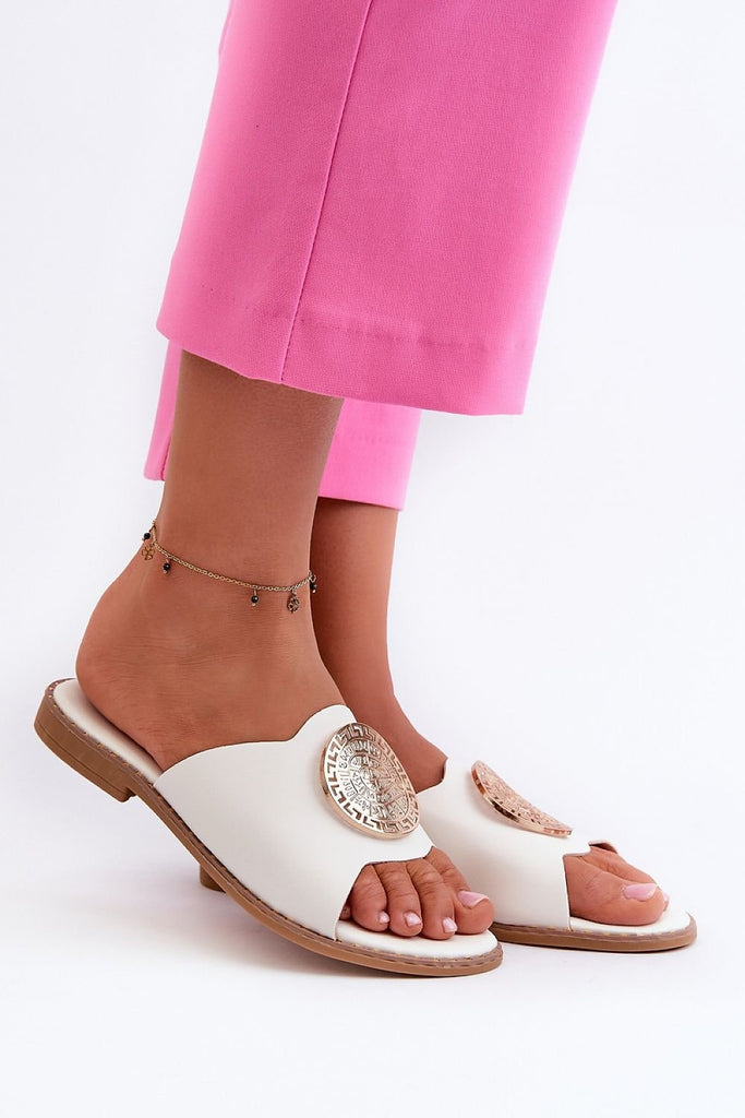 Elegant women's flip-flops made of eco leather. Set on a flat heel, they provide comfort and stability. The ornamentation adds charm, which makes the flip-flops a perfect choice for summer days, both for everyday wear and for more formal occasions. fabric artificial leather Footbed artificial leather Heel height 1.5 cm Size Insole lenght 36 23.5 cm 37 24 cm 38...