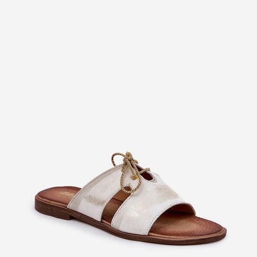 Leather women's slides with a flat heel are an elegant option that combines comfort with modern style. They feature two gold buckles with adjustable straps, which not only provide the perfect fit for the foot but also serve as a fashionable accent, adding a subtle shine. With their flat heel, these slides are comfortable and stable, making them perfect for...