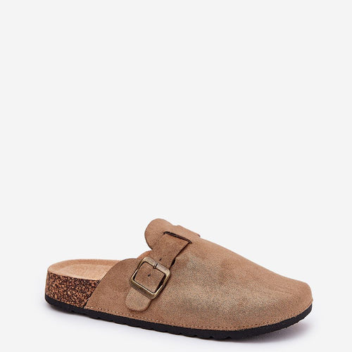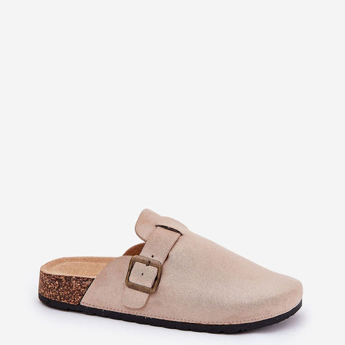 Women's cork platform clogs. Made of eco-suede. Covered toes provide greater protection, and the buckle allows for a perfect fit to the foot. The profiled insole ensures comfort throughout the day, providing proper support. These clogs will be an excellent choice for everyday wear, perfect for casual styling, ensuring comfort and a fashionable look. fabric imitation leather suede Footbed imitation...