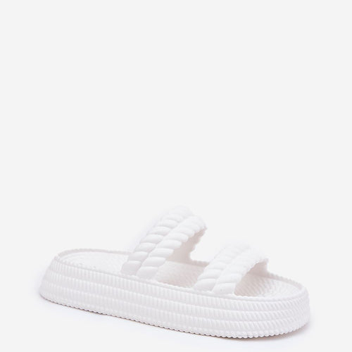 Women's flip-flops made of lightweight foam material, set on a platform that offers comfort throughout the day. Two straps at the front provide stability and confidence while walking. Perfect for hot days, these flip-flops are an excellent choice for holidays, time by the pool or at the beach, combining functionality with comfort. fabric piano Footbed piano Platform height 4 cm...