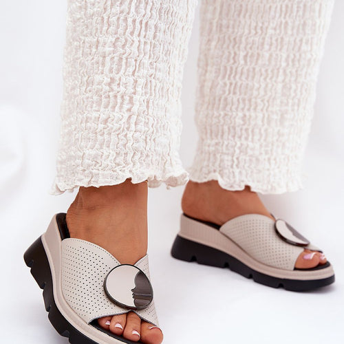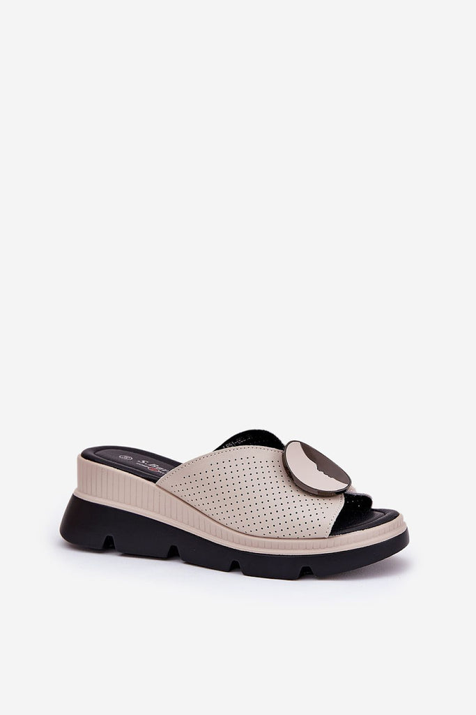 Women's sandals from the S.Barski brand. Made of natural leather. Set on a platform with a wedge heel. They stand out with a decorative detail at the front. The Comfort insole provides comfort and excellent cushioning throughout the day. A fashionable and elegant style that you will definitely match with many outfits! fabric natural leather Footbed artificial leather Heel height...