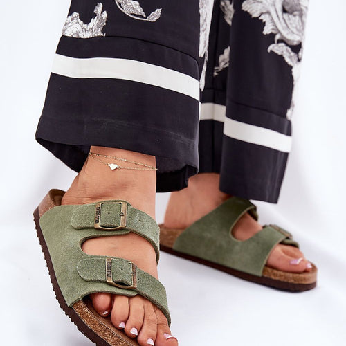 Slippers sandals for women from the Big Star brand. Made of natural suede, they are a stylish choice for everyday wear. Set on a platform, they provide stability and comfort throughout the day. Adorned with studs, a strap with a buckle at the front, they give a unique character. The toes are covered, wide and rounded, guaranteeing comfort. These slippers...