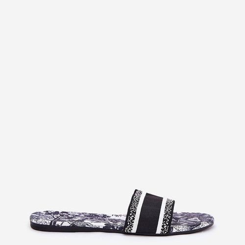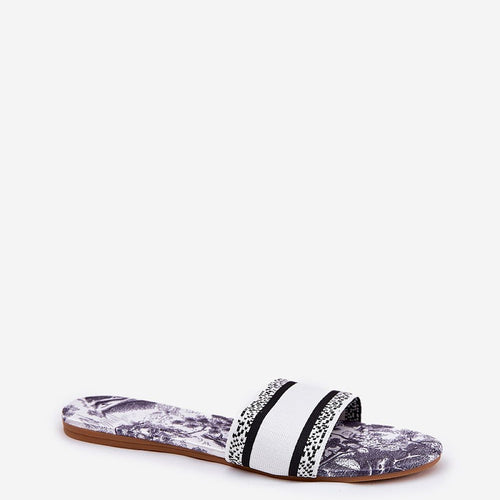 Flat women's slippers made of textile material, which stand out with a unique pattern, adding them a special character. These slippers are perfect for warm days, they go well with summer dresses, skirts or shorts, introducing lightness, color and a fashionable accent into everyday stylizations. Perfect for the beach as well as for city walks. fabric fabric Footbed fabric Sole...