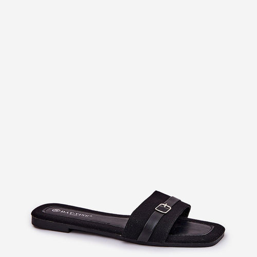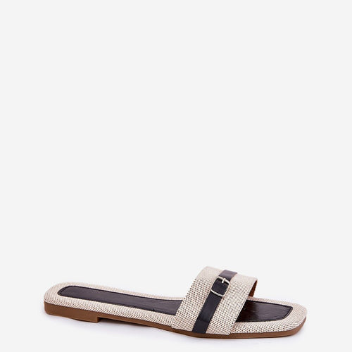 Flat women's slippers made of textile material that combine comfort with subtle style. Decorated with a thin strap with a buckle in the front. Perfect for warm days, these slippers go perfectly with summer flowy dresses and fabric pants. fabric fabric Footbed ecological leather plus fabric Heel height 1 cm Size Insole lenght 36 23 cm 37 24 cm 38...