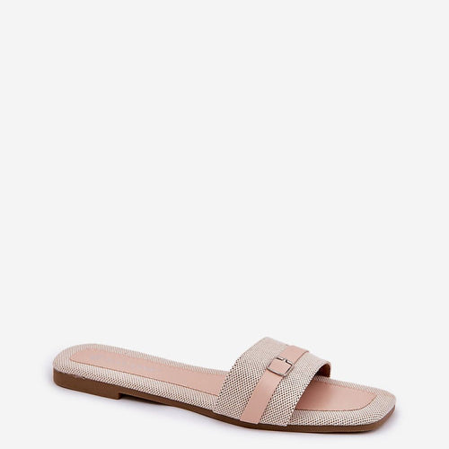 Classic women's flip flops made of eco leather, set on a flat heel, which combine comfort with an elegant look. A large buckle on the strap adds a subtle character to them. Perfect for everyday wear, these flip flops perfectly complement summer stylizations, providing comfort and simple elegance throughout the day. fabric artificial leather Footbed artificial leather Heel height 1...