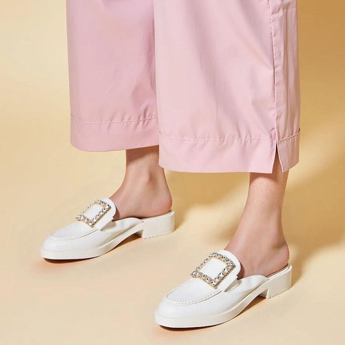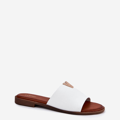 Elowen white sandals are a fashionable choice for women looking for stylish footwear for warmer days. The large decorative buckle with crystals gives the shoes a unique character, and the classic slip-on style makes them easy to put on quickly. The stable sole and balanced heel make this model perfect for both work and weekend outings. fabric artificial leather Footbed...