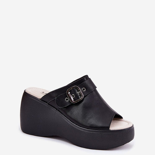 Women's leather sandals are a stylish proposition for warm days. They stand out with a wedge heel and platform. At the front, there is a strap with a buckle. The soft leather insole ensures comfort, and the elegant design makes these sandals a perfect addition to summer outfits. Ideal for everyday outings and special occasions. fabric natural leather Footbed natural...
