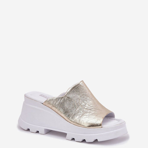 Women's leather sandals are an elegant and comfortable option for warm days. Set on a wedge, they provide stability and comfort throughout the day. On the side, on the strap, there is a subtle decorative detail that adds a unique character to them. The leather insole ensures wearing comfort, making these sandals a perfect choice for summer stylizations. Perfect for...