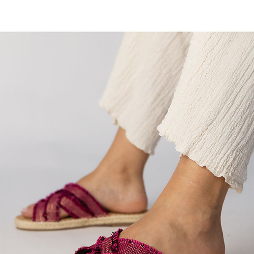 Women's sandals made of textile material. Set on a platform with a braid, they are a stylish and comfortable option for warm days. There is a subtle bow at the front, adding charm to them. Light and comfortable, they go well with dresses, skirts, and pants. fabric fabric Footbed artificial leather Platform height 3 cm Size Insole lenght 36 23...