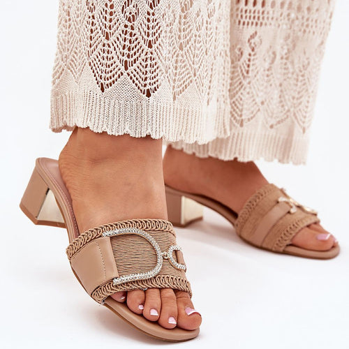 Women's block heel sandals are an elegant proposal for warm days. At the front, there are subtle decorative details with zircons that give them a unique shine. The eco-leather insole ensures comfort all day long. Perfect for summer stylizations, they combine comfort with a fashionable look, perfect for both everyday wear and special occasions. fabric ecological leather plus plastic Footbed...