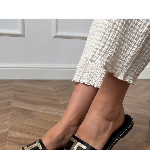 Elegant women's sandals in a classic style, made of high-quality synthetic leather, are the perfect combination of style and comfort. The simple cut has been enriched with a subtle, gold decoration on the top, which adds elegance and a modern character to the whole. The soft insole made of synthetic leather provides comfort while wearing, and the flat 1 cm...