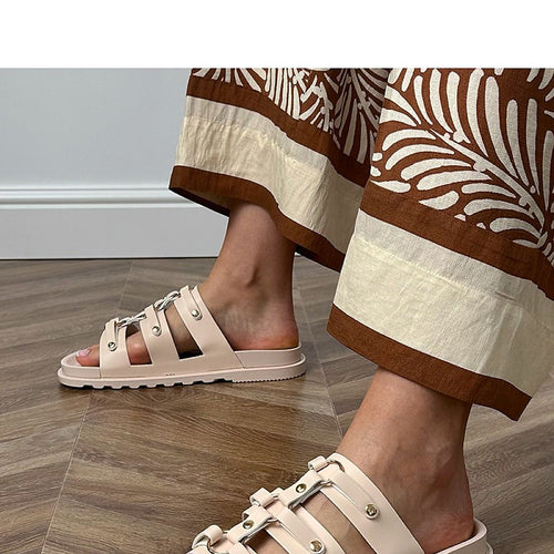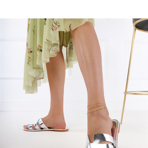 Elegant women's flip-flops in a classic style are the perfect combination of style and comfort for the summer. Made of high-quality eco-leather, they impress with subtle cuts and a striking gold decoration that adds elegance and a modern character to them. Equipped with a flat heel measuring 1 cm, they provide comfort throughout the day, and the eco-leather insole guarantees...