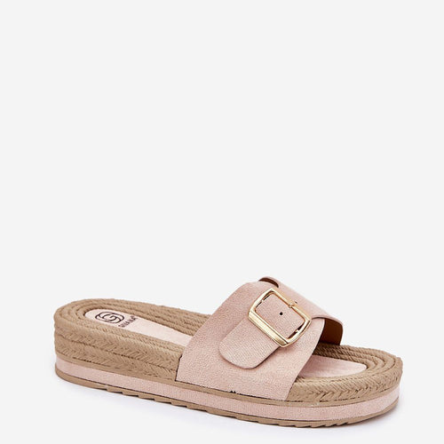 Women's sandals made of eco suede are the perfect choice for warm days. The sandals have an adjustable strap with an elegant gold buckle at the front, allowing for a perfect fit to the foot. Mounted on a platform, they provide additional height and comfort, without sacrificing comfort. Decorated with an imitation braid that adds lightness and character to them....
