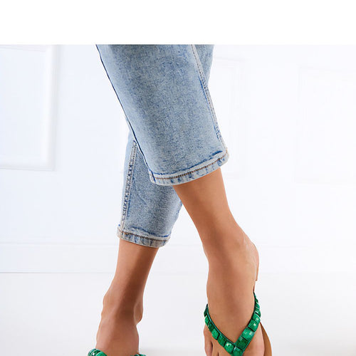 These classic flip-flops are a combination of comfort and subtle shine. Made of high-quality synthetic leather, they impress with stylish, braided straps adorned with delicate zircons, which add elegance and feminine charm to the shoes. The model has a flat heel of 1 cm, which ensures comfort for everyday wear. The insole, also made of synthetic leather, guarantees comfort and...
