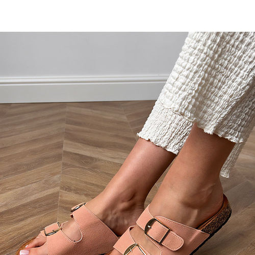 Stylish sandals with a classic design that attract attention with decorative buckles. Made of soft, suede-like eco leather, they look exceptionally elegant and modern. Decorative buckles add character to them and make them a great addition to summer outfits, both casual and more feminine. The plastic insole ensures durability and easy cleaning, and the comfortable 3.5 cm platform subtly elevates...