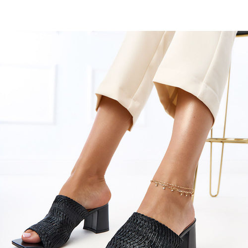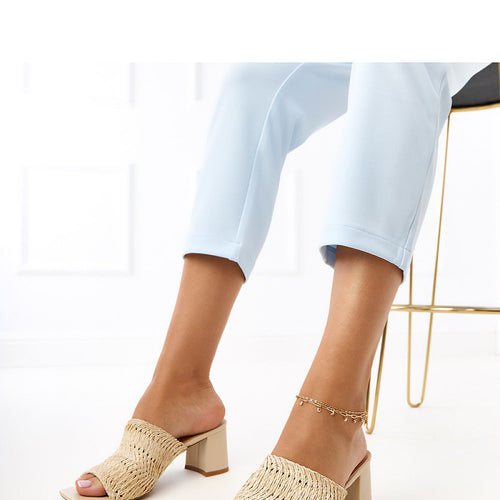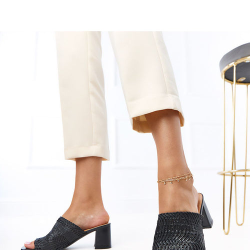 Add style to every summer outfit with these classic sandals with decorative, woven straps. Their unique design combines fashion and comfort, creating the perfect footwear for warmer days. The upper and insole are made of high-quality faux leather, which ensures comfort and an aesthetic look. The stable 8 cm block heel adds lightness and elegance to the silhouette, while guaranteeing...