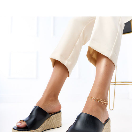 Modern espadrille-style flip flops made of durable rubber are the perfect combination of comfort and trendy style. The slip-on style ensures quick and easy putting on, and the 7.5-centimeter wedge heel elegantly elevates the silhouette, adding lightness and stability when walking. The outer material made of rubber guarantees resistance to moisture and easy maintenance, making the flip flops suitable for...
