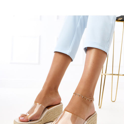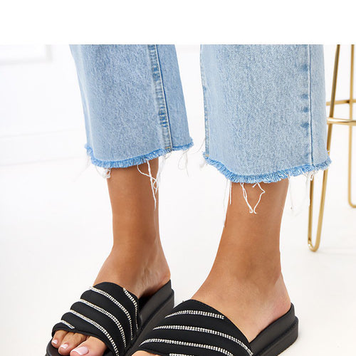 These elegant flip-flops are a combination of comfort and shiny style. Made of a combination of rubber and fabric, they provide comfort and durability, and decorative zircons add an elegant, eye-catching character to them. The slip-on style makes them extremely practical, perfect for a quick trip out of the house, a walk, or summer meetings. The 4 cm high platform...
