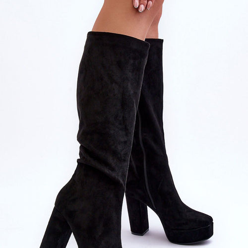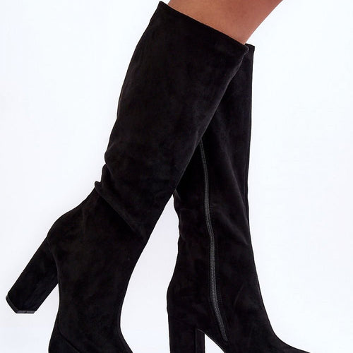 Elegant women's boots made of eco-suede. Set on a stiletto heel. Zippered on the inside of the upper. This model has a stiffened heel counter. Pointed nose will optically slenderize the legs. The boots will be perfect for many outfits, e.g.: for dresses, skirts or pants. They should definitely find a place in your closet! fabric imitation leather suede Footbed...