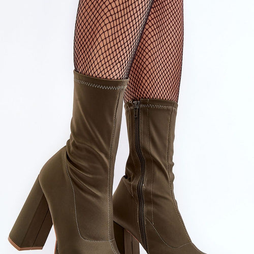 Fashionable women's boots were made of textile material. Set on a heel in the form of a post and a platform. Cut with a higher upper. Zipper closure on the side. The heel counter is stiffened. Soft eco leather insole will provide comfort during use. This model will look great with both dresses, elegant pants and skirts. fabric fabric Footbed...