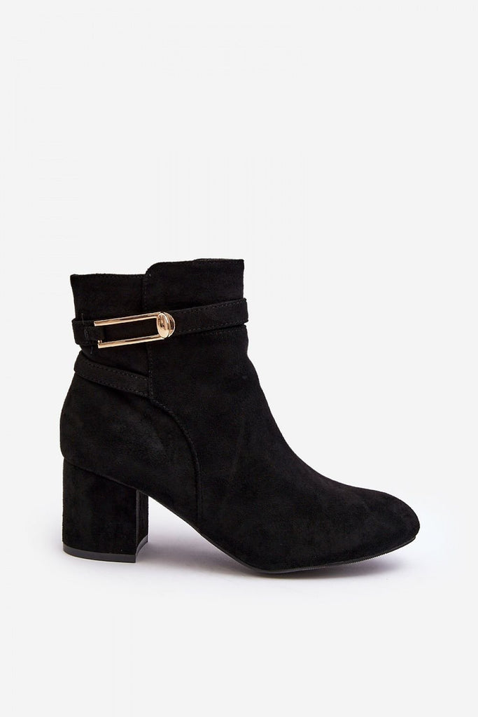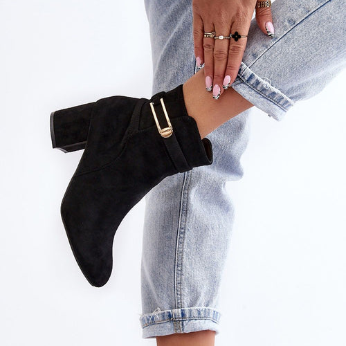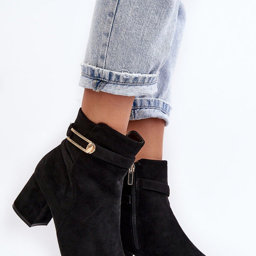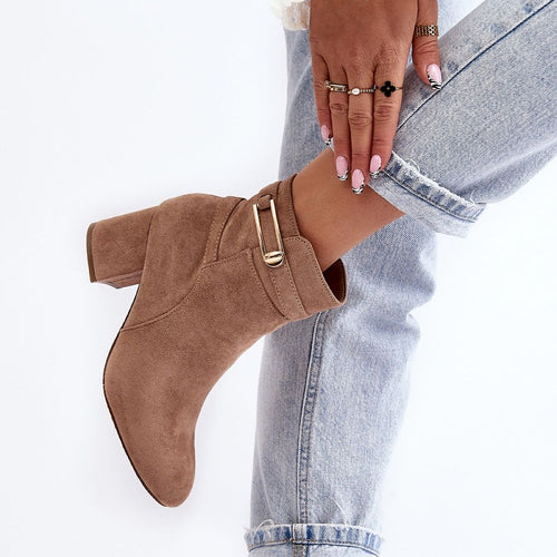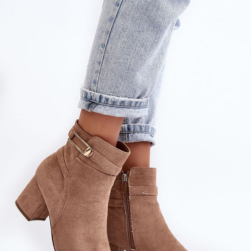 Heeled boots will go well with many styles. The unique cut will delight everyone! The boots are stable and comfortable to wear. You must have them in your closet ! Made of eco-suede. Low heel in the form of a block. Slip-on model with additional zipper closure. Pointed nose will optically slenderize legs. Soft, eco leather insole will ensure comfort...