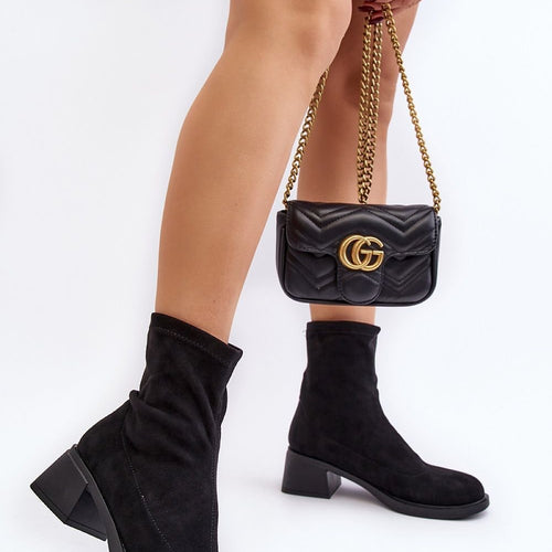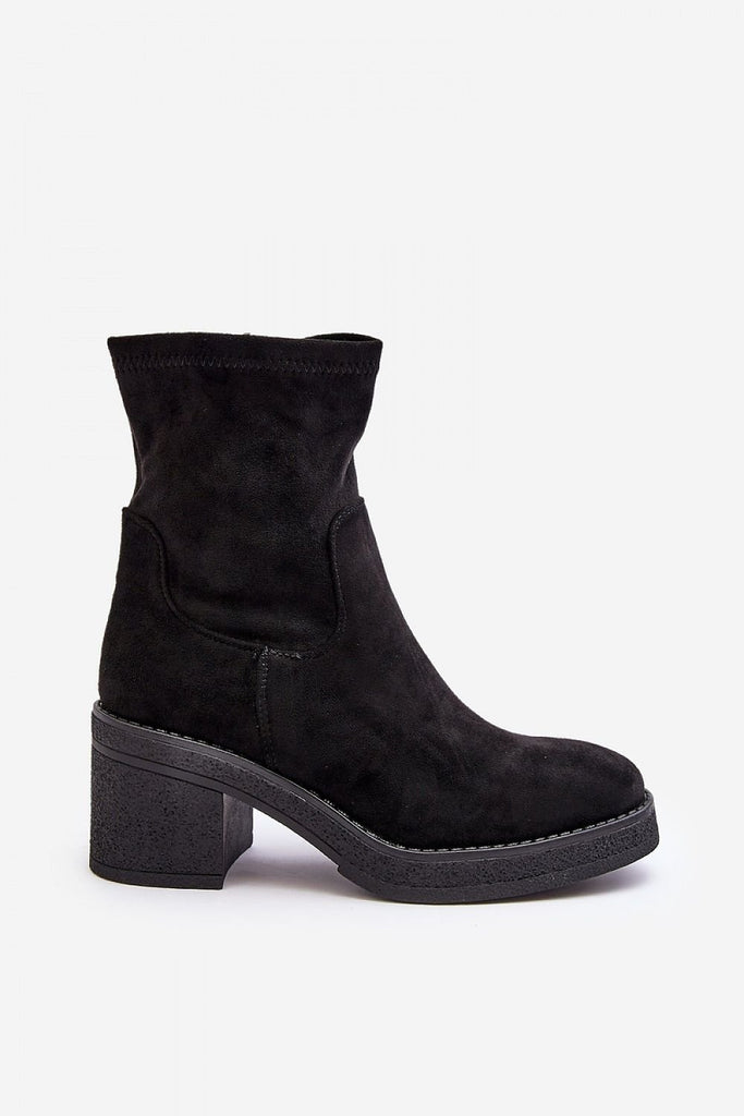 Classic women's boots that you will match with many autumn-winter outfits! Made of eco-suede. Set on a heel in the form of a post. Rounded toe caps. The center is partially insulated with a shoe blanket. You absolutely must have them! fabric imitation leather suede warmers fabric Footbed shoe cover Upper height 16 cm Heel height 7.5 cm Size Insole...
