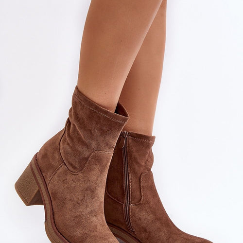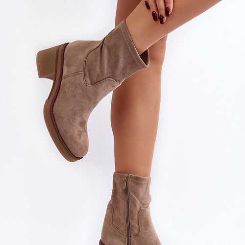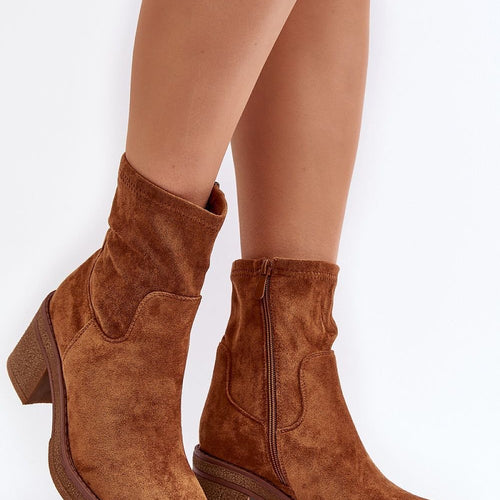 Women's slip-on boots made of eco-suede. Set on a low block heel. Rounded toe caps. Ankle-length upper. Classic cut, which you will match with almost any autumn styling! fabric imitation leather suede warmers shoe cover Footbed shoe cover Upper height 16 cm Heel height 5 cm Size Insole lenght 36 23.5 cm 37 24 cm 38 24.5 cm 39 25...
