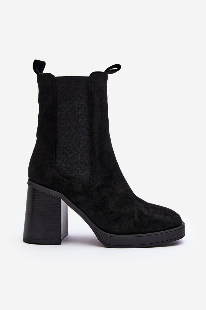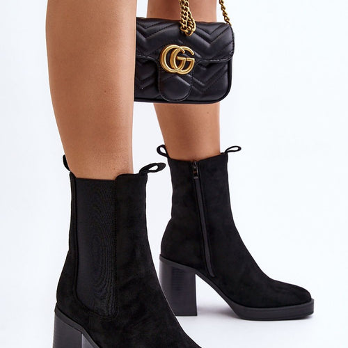 Women's boots made of eco-suede. Set on a heel in the form of a post. Upper past the ankle. Almond-shaped toe. Zippered closure. Interior insulated with shoe blanket. This classic model will fit into many stylings. You should definitely have them! fabric imitation leather suede warmers shoe cover Footbed shoe cover Upper height 12 cm Heel height 8 cm Size...