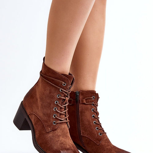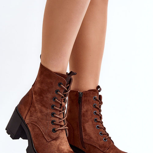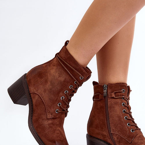 Stylish and comfortable women's boots made of eco-suede are the perfect choice for colder days. A low heel in the form of a post makes them comfortable to use. This model has a practical zipper for easy putting on and additional lacing. The toecaps are rounded. Shoe blanket insulation provides warmth during autumn and winter days. These boots are the...
