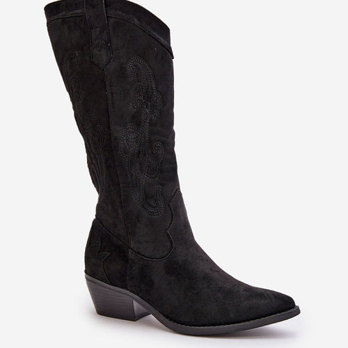 Women's eco suede boots are a stylish proposition for every woman. Set on a low heel and finished with pointed toes, they add elegance to any outfit. The model is slip-on with an additional zip closure. Cowboy boots will perfectly complement various fashion sets. You can't miss them in your wardrobe! fabric imitation leather suede Footbed fabric Upper height 34...