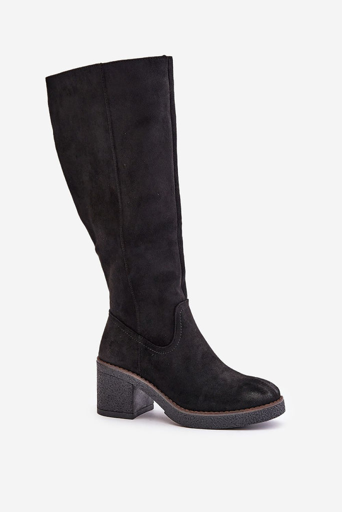 Women's suede heeled boots with protector. If you appreciate comfort and simple, classic cuts, then this model will certainly appeal to you. Heel height of 9 cm and practical zipper closure and soft inner insole are their undoubted advantages. They are made of eco-suede, on a foam lining. fabric ecological suede warmers foam padding Heel height 9 cm Sole height...