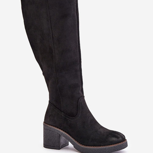 Jezzi brand boots made of eco-suede are the perfect choice for colder days. Set on a stable stiletto heel. Model fastened with a zipper, which makes it easy to put on and take off. Rounded toe caps. Shoe blanket insulation guarantees warmth and comfort, making these boots an ideal choice for everyday styling. fabric imitation leather suede warmers shoe cover...